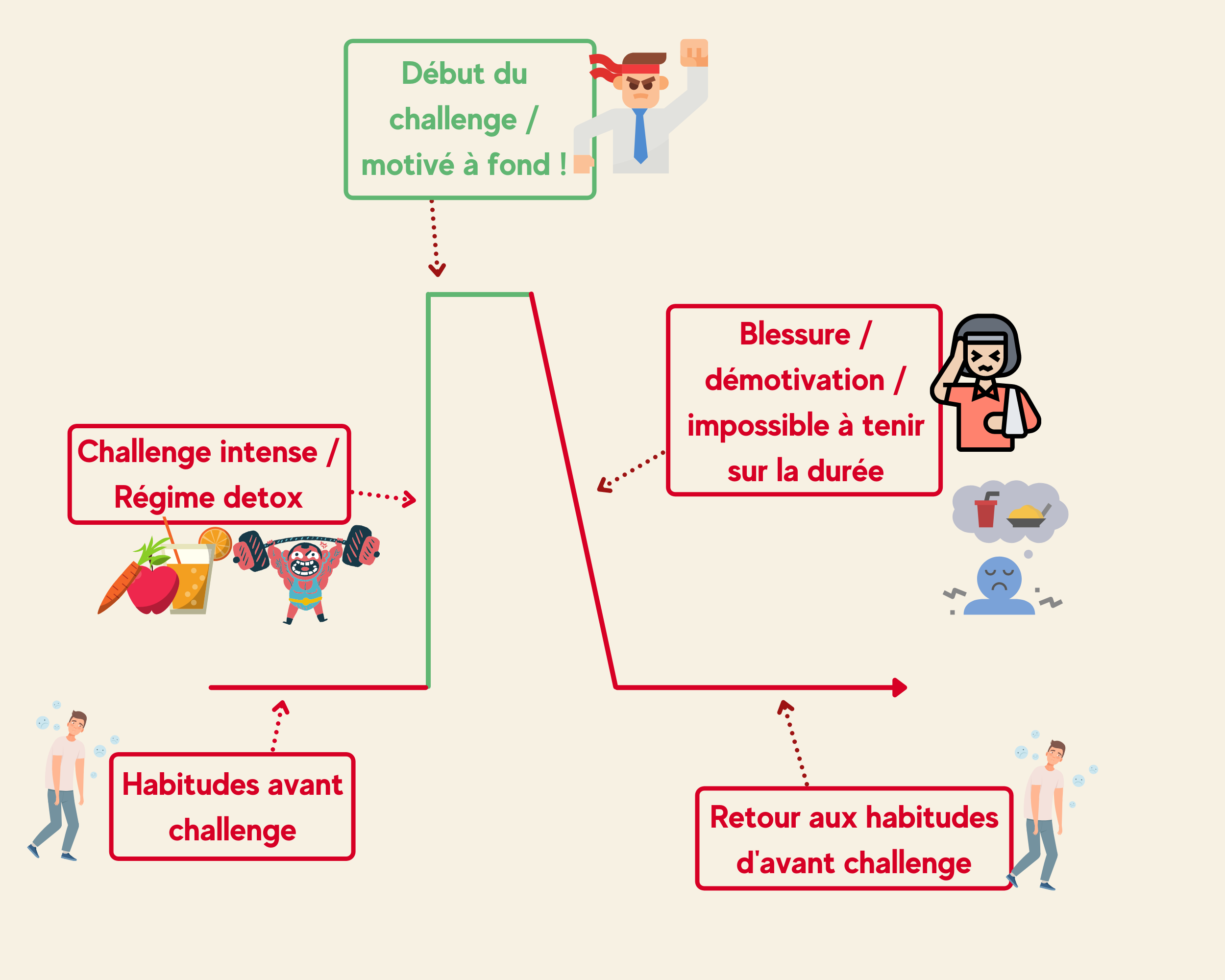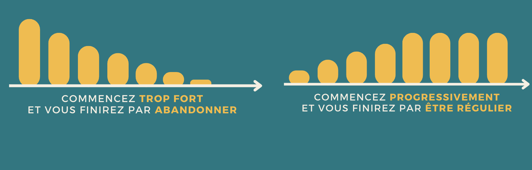 💡 Ce programme a été pensé pour t'aider à mettre en place de nouvelles habitudes, progressivement. L'erreur classique est de vouloir tout faire, tout de suite (comme les résolutions de janvier), mais bien sûr ça ne dure guère longtemps.