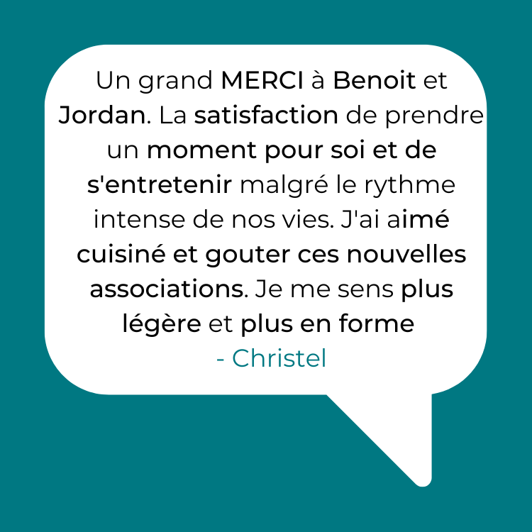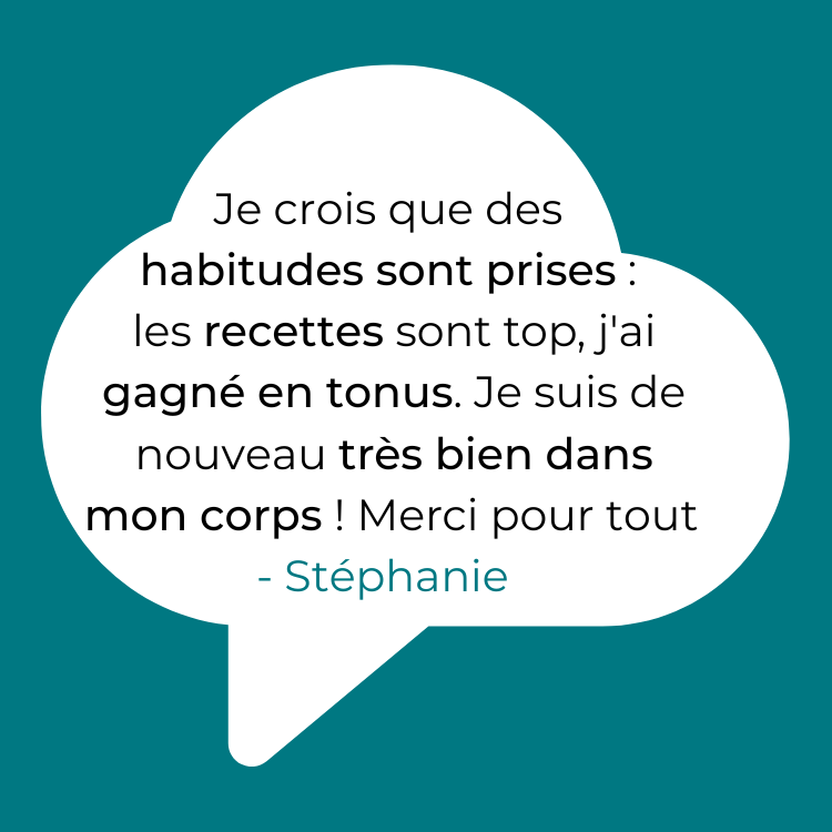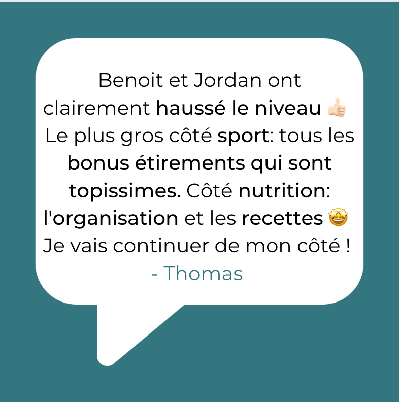🍅 Pour pallier à ça, tu verras que la partie nutrition n’est pas axée sur la restriction mais sur ce leitmotiv : Comment réussir à prendre goût de cuisiner des choses simples mais saines ! Tu pourras même gérer les quantités selon ton appétit.